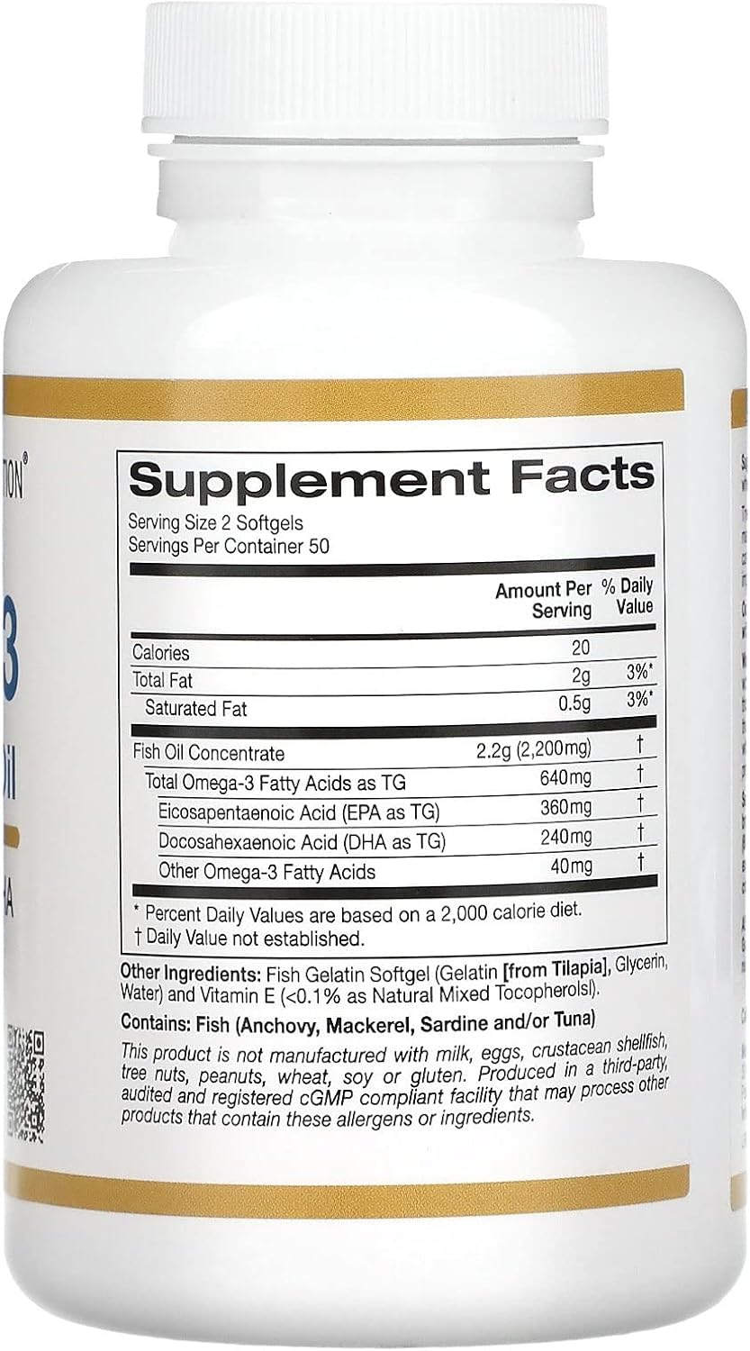 California Gold Nutrition Omega-3 Premium Fish Oil (100 Softgels)
