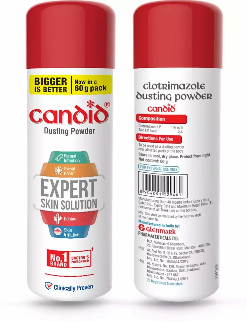 Candid Dusting Powder is specially formulated to maintain skin hygiene and comfort. Its antifungal properties help prevent rashes and infections caused by excessive moisture, while keeping your skin soft and fresh. Ideal for daily use, this powder is perfect for sensitive, sweaty, or problem-prone skin areas. It ensures long-lasting dryness and protection, making it a reliable choice for maintaining healthy skin.