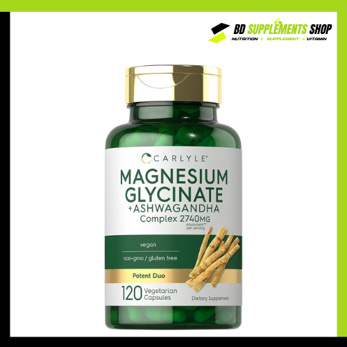 Get 100% authentic Carlyle Magnesium Glycinate with Ashwagandha 2740mg (120 Capsules) at the best Carlyle Magnesium Glycinate with Ashwagandha 2740mg (120 Capsules) price in Bangladesh, exclusively from bdsupplementshop.com, your trusted online store for genuine imported supplements.