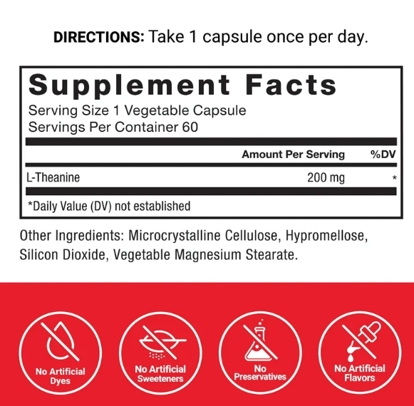 This premium formula provides 200 mg of L-Theanine per capsule, designed to promote relaxation, mental focus, and stress relief without causing drowsiness. Perfect for daily use, it supports a calm and focused mind in today’s fast-paced lifestyle.