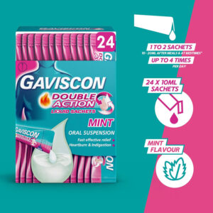 Be the first to review “Gaviscon Double Action Liquid Sachets 24 X 10ml Mint Flavor”
