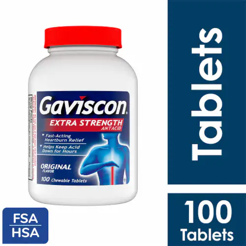 Gaviscon Extra Strength Chewable Antacid – 100 Tablets is specially formulated to provide powerful and fast relief from heartburn, acid reflux, and acid indigestion. Its extra-strength dual action formula works by neutralizing excess stomach acid while forming a protective barrier that helps prevent acid from rising into the esophagus.