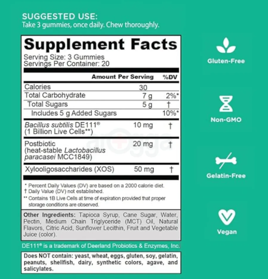 • Combines prebiotics, probiotics, and postbiotics in a single gummy