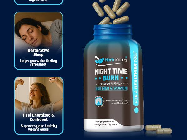Herb Tonics NIGHT TIME BURN 60 Vegetarian Capsules is a scientifically formulated nighttime fat burner designed to support weight management, metabolism, and restful sleep. Each vegetarian capsule contains a potent blend of natural ingredients that work synergistically to boost fat metabolism while you sleep, helping your body burn calories more effectively.