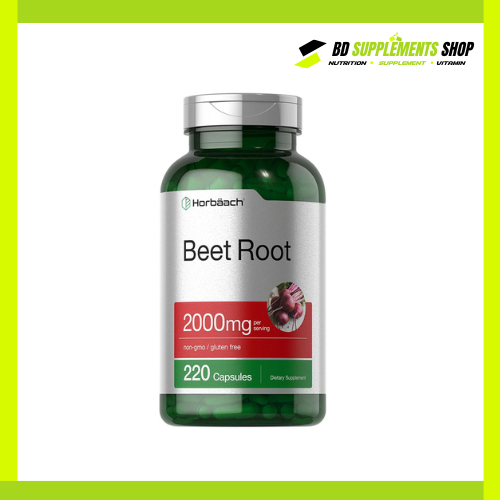 Horbäach Beet Root Capsules 2000mg – 220 Capsule are a high-potency dietary supplement formulated to support cardiovascular health, improve blood circulation, and enhance stamina. Each capsule contains 2000mg of pure beet root extract, rich in nitrates and antioxidants, which help boost nitric oxide levels, support healthy blood pressure, and promote overall energy and endurance.