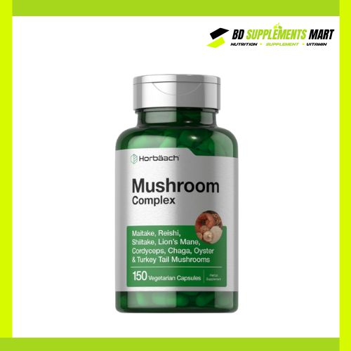 Boost immunity, energy, and overall health with Horbäach Mushroom Complex 150 Capsules. Order today from bdsupplementsmart.com to get the latest 2025 price in Bangladesh with guaranteed authenticity.