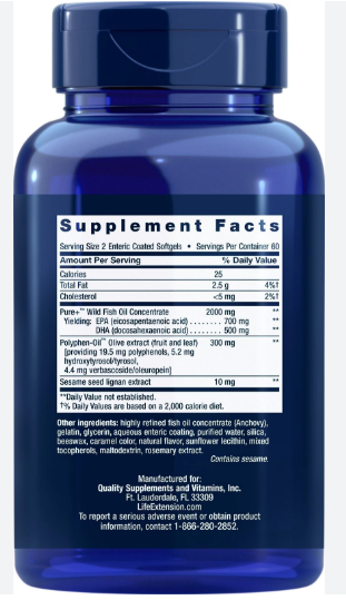 Life Extension Super Omega-3 EPA/DHA Fish Oil Sesame Lignans & Olive Extract 60 Softgels