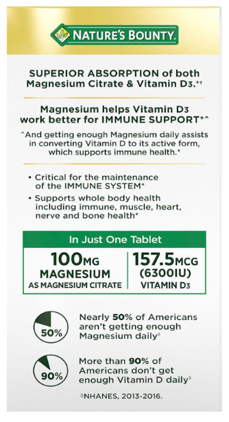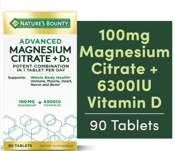 Authentic Product: 100% genuine Nature’s Bounty Advanced D3 + Magnesium Citrate 90 Tablets available at bdsupplementsmart.com