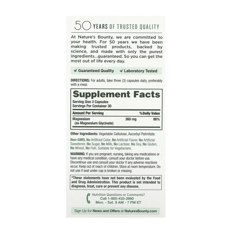 Nature’s Bounty, Advanced Magnesium Glycinate 360 mg (90 Capsules)