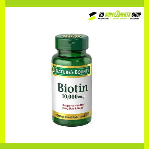 If you’re searching for Nature’s Bounty Biotin 10000 mcg – 120 Softgels price in Bangladesh or price in BD, shop confidently from bdsupplementshop.com for guaranteed authenticity and competitive pricing.