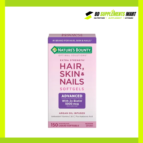 Authentic Product: 100% genuine Nature’s Bounty Extra Strength Hair, Skin & Nails 5,000 mcg of Biotin 150 Softgels available at bdsupplementsmart.com