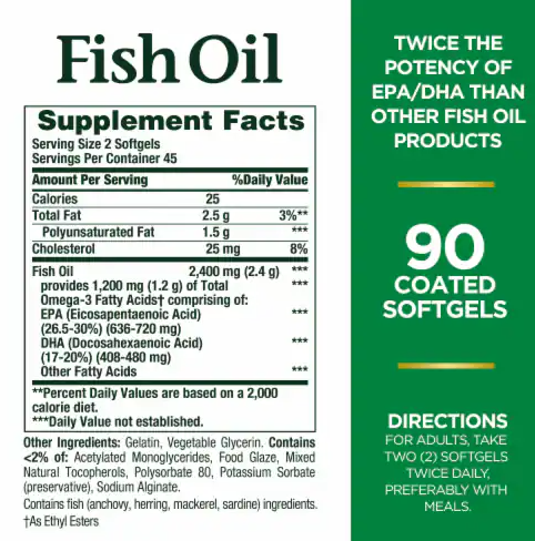 Nature’s Bounty Fish Oil 2400 mg 90 Coated Softgels – Product Description
