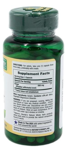 Product Specification – Nature’s Bounty Ginger Root 550mg Capsules