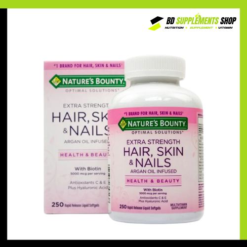 At bdsupplementshop.com, we provide 100% authentic Nature’s Bounty Hair, Skin and Nails (250 Softgels) to ensure you receive the highest quality product at the most competitive price in Bangladesh.
