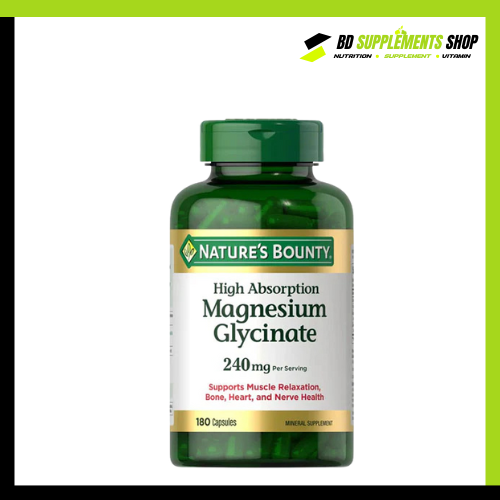 Order now from bdsupplementshop.com to get Nature’s Bounty Magnesium Glycinate 240mg (180 Capsules) at the best price in Bangladesh and maintain muscle, nerve, and overall health naturally.