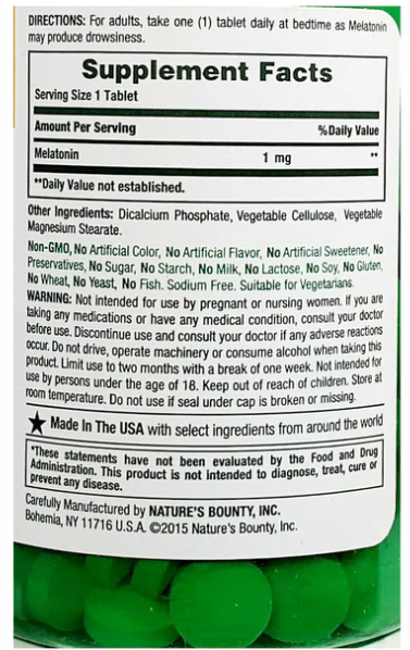 Product Name: Nature’s Bounty Melatonin 1mg