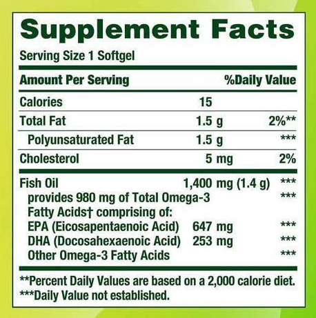 Nature’s Bounty Odor-Less Fish Oil 1400 mg 980 mg of Omega-3 130 Coated Softgels