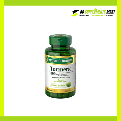 Buy 100% authentic Nature’s Bounty Turmeric 1000mg Plus Black Pepper Extract – 60 Capsules from bdsupplementsmart.com at the best price in Bangladesh. Check the Nature’s Bounty Turmeric 1000mg Plus Black Pepper Extract – 60 Capsules price in Bangladesh, price in BD, and Latest 2025 Price & Benefits today.