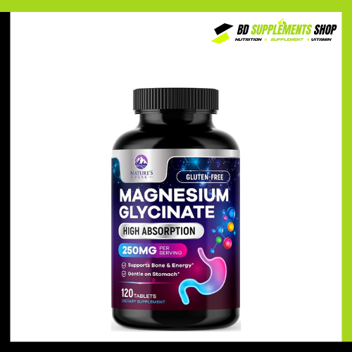 Order now from bdsupplementshop.com to get Nature’s Nutrition Magnesium Glycinate 250mg (120 Tablets) | High Absorption Magnesium Glycinate at the best price in Bangladesh and support your muscle, nerve, and overall health naturally.
