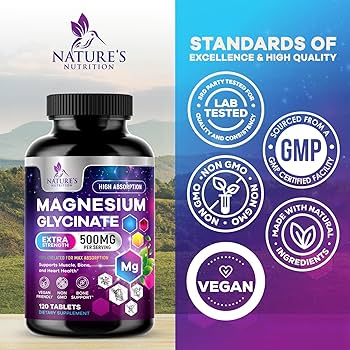 Enhance your overall health, muscle function, and nervous system support with Nature’s Nutrition Magnesium Glycinate 500mg – 120 Tablets. This highly absorbable magnesium glycinate formula ensures maximum bioavailability, promoting muscle relaxation, bone strength, cardiovascular health, and energy metabolism. Perfect for individuals seeking daily magnesium support for optimal wellness.