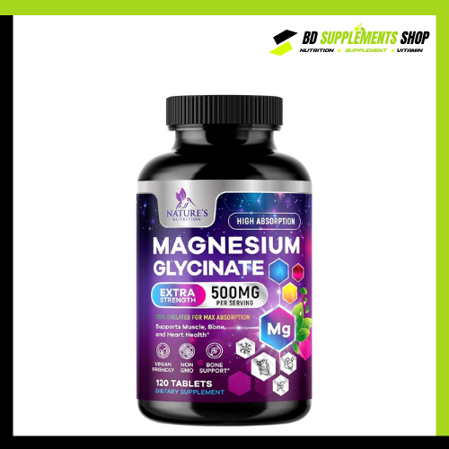 At bdsupplementshop.com, we provide authentic Nature’s Nutrition Magnesium Glycinate 500mg – 120 Tablets at the best price in Bangladesh, backed by genuine quality, fast delivery, and trusted service.