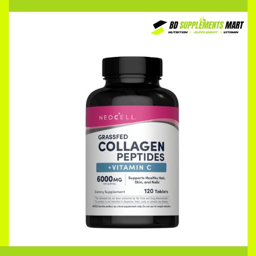 The NeoCell Grassfed Collagen Peptides + Vitamin C 6000 mg 120 Tablets price in BD may vary based on availability. At bdsupplementsmart.com, we provide the Latest 2025 Price & Benefits with fast and secure delivery across Bangladesh.