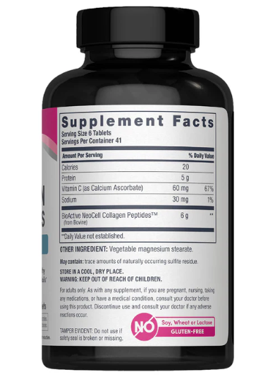 When you buy NeoCell Grassfed Collagen Peptides + Vitamin C 6000 mg 120 Tablets from bdsupplementsmart.com, you receive: