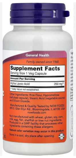 Now Foods Alpha Lipoic Acid 250 mg 60 Veg Capsules