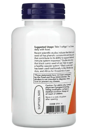 When you purchase Now Foods Black Cumin Seed Oil 1000 mg 60 Softgels from bdsupplementsmart.com, you receive: