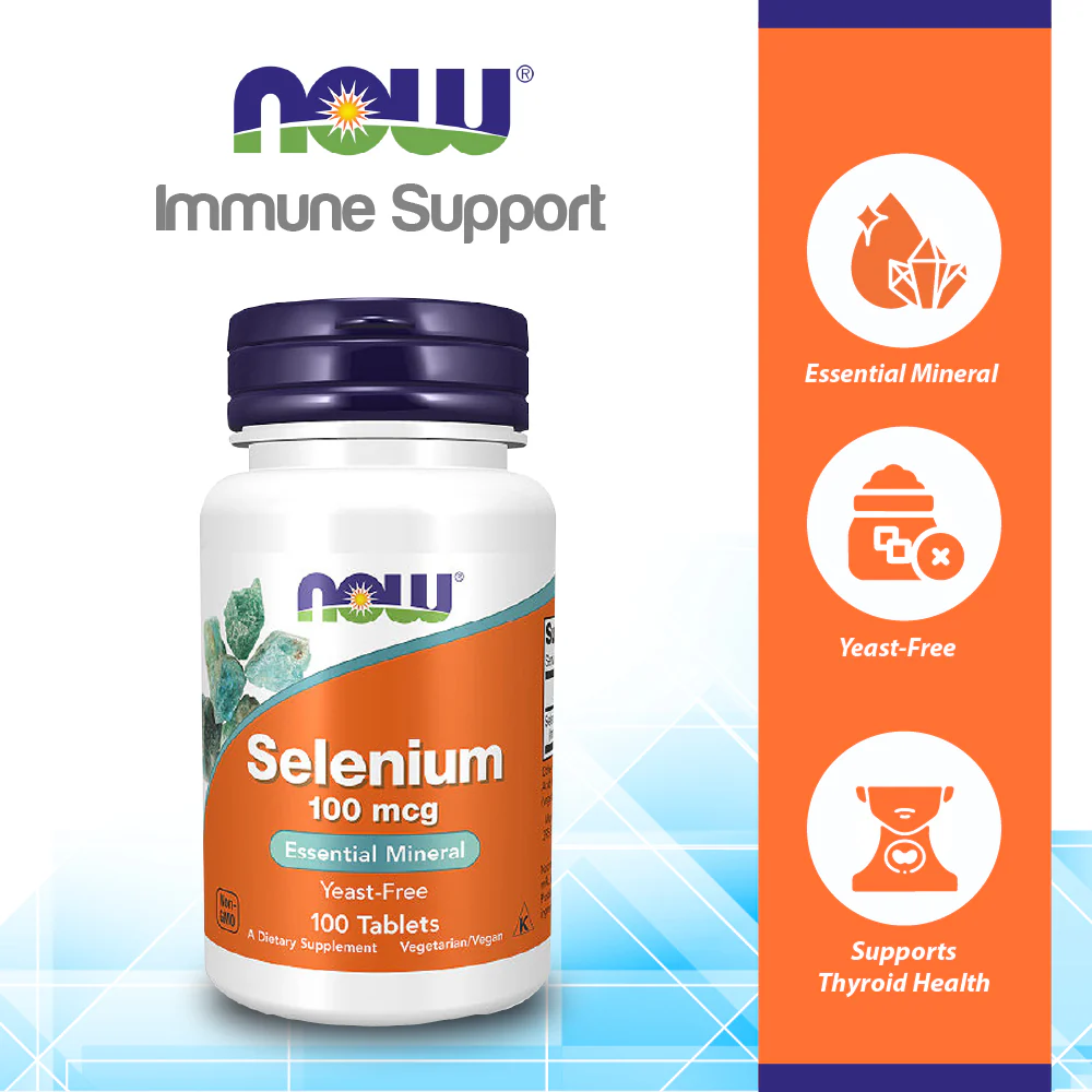 Support immune health, antioxidant protection, and overall wellness with NOW Foods Selenium 100 mcg (100 Tablets) — a premium-quality dietary supplement delivering an essential dose of selenium in convenient tablet form.