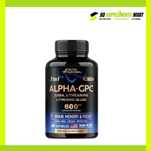 Check the NutraHarmony Alpha-GPC 600 mg with Gaba, L-Theanine, L-Tyrosine, B6 & B12 60 Capsules price in BD at bdsupplementsmart.com. Get the Latest 2025 Price & Benefits with fast and secure delivery anywhere in Bangladesh.