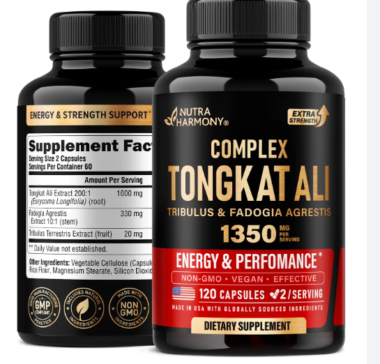 NutraHarmony Complex Tongkat Ali with Tribulus & Fadogia Agrestis 120 Capsules is a premium male performance and vitality supplement. Designed to naturally support testosterone levels, energy, stamina, and overall male health, this powerful blend combines Tongkat Ali, Tribulus Terrestris, and Fadogia Agrestis for maximum efficacy.