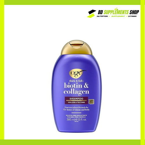 At bdsupplementshop.com, we guarantee 100% authentic OGX Thick & Full Biotin & Collagen Shampoo 385ml at the best price in Bangladesh with the latest 2025 stock.