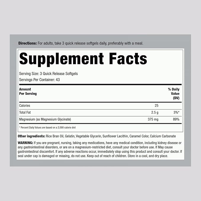 Formulated with magnesium glycinate, this supplement ensures maximum absorption and digestive comfort, making it ideal for individuals who experience sensitivity with other forms of magnesium. Each softgel delivers 375mg of pure magnesium glycinate to help reduce stress, improve sleep quality, and enhance muscle recovery.