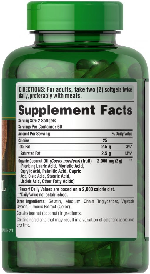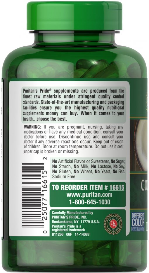 Puritan’s Pride Coconut Oil (1,000 mg) – 120 softgels