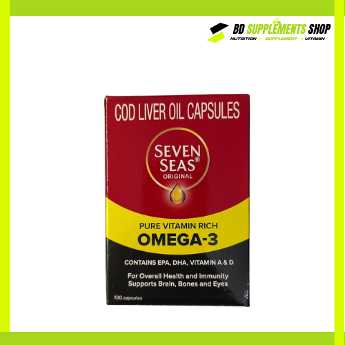 Buy Seven Seas Original Cod-Liver Oil (100 Capsules) at the best price in Bangladesh from bdsupplementshop.com. Authentic UK-made Omega-3 supplement with Vitamins A & D for heart, bone, joint, and immune health.