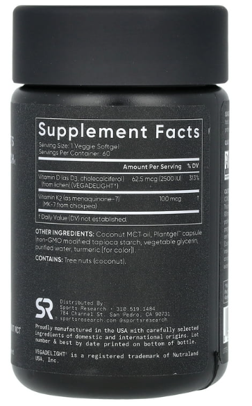 When you buy Sports Research D3 + K2 Plant Based 125 mcg/100 mcg 60 Veggie Softgels from bdsupplementsmart.com, you are guaranteed: