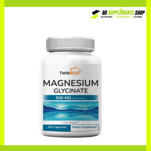 TwinBest Magnesium Glycinate 500mg (240 Capsules) in Bangladesh is a premium high-absorption magnesium supplement formulated for maximum bioavailability and gentle digestion. Magnesium glycinate is one of the most recommended forms of magnesium for improving sleep quality, reducing anxiety, supporting muscle relaxation, and enhancing overall wellbeing.
