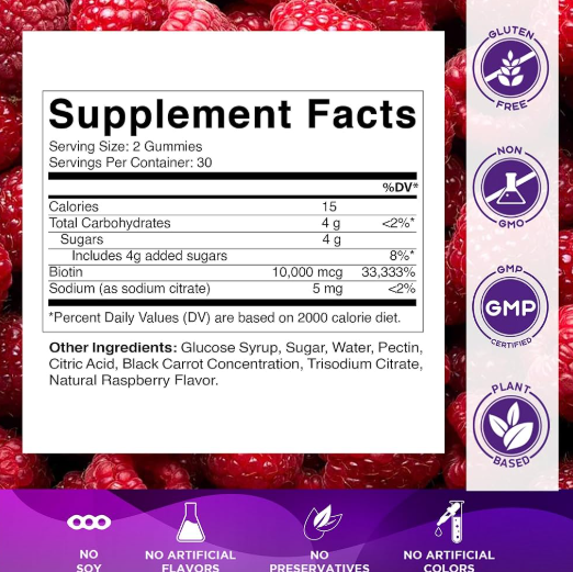 • High-Potency Formula: 10,000 mcg biotin per serving