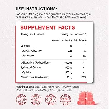 Main Ingredients: L-Glutathione (1,000 mg), Collagen, Vitamin C